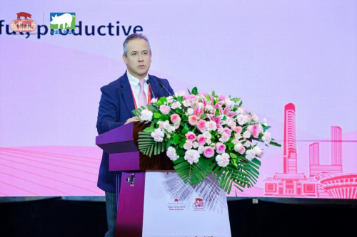 在大会主论坛上,印遇龙院士分享了饲用微量元素新产品创制与应用的前沿进展;塞萨尔·科尔佐教授探讨了行业主导的自愿健康计划从区域到国家的推进路径;北京大学张改平教授以“我看疫苗”为题,分享了疫苗科研与应用的前沿视角;中国农业大学王爱国教授解析了中国地方猪保护与利用的关键策略;荷兰瓦赫宁根大学皮特·兰根迪克教授系统阐述了提高母猪使用年限与终身性能的风险管理策略。