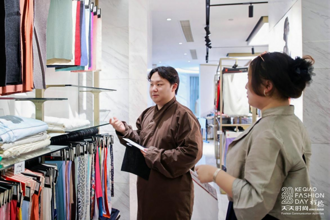 偏爱服饰拥有能够自主开发系列产品矩阵的服装设计团队,设计研发主管李旭本次走访柯桥面料企业主要是为了寻找稳定的大批量供应商。新印象纺织作为源头厂家,产品性价比较高,面料品类较适合春夏服饰,符合设计师需求。米尚纺织的面料样式较为大众化,韩系随性、舒适自然的风格令李旭发现了其在外套、风衣、裤装上的广阔应用空间。