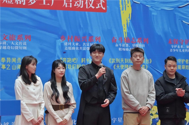 最后的压轴环节中,来自全国各城的12个剧组主创人员公共启动2026能量短剧序列开机仪式,题材聚焦奉化人文、乡村振兴、穿越励志、未保守护、青春成长、亲情孝慈等多元正能量领域。《大奉异闻录》《奉化往事之山海传奇》彰显地域文化特色,《奔跑吧!村长大人》《我们村的男神》聚焦共富征程,《未来守护者第三季》《美丽黄昏若初见》呼应“一老一小”主题,尤其是编剧李鹏飞创作的《十五年的回忆》聚焦青春成长、编剧麦麦的《纸偶游戏》、编剧景犬《伪证》则满足悬疑题材爱好者需求,更加丰富了品类矩阵,全面展现基地创作实力。