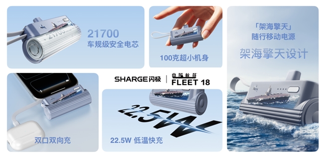作为此次发布会的核心亮点,闪极中国航母联名系列将航母的硬核设计语言与闪极的极致产品理念深度融合,打造出兼具情感价值与实用性能的标杆产品。首发的「电磁弹射」磁吸移动电源,精准还原航母甲板、舰载机群、电磁弹射轨道等细节,让用户在日常使用中便能触摸到大国重器的磅礴气场。