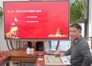 军史专家刘军老师和刘波教授,此前受创作团队之邀,作为本次唐卡创作的军史顾问,经过半年多时间,对若干史实进行了指导,重点就红军及解放军的服饰、旗帜,以及当时的武器弹药、行军动作进行了细致入微的指导,力求使每一幅唐卡作品都符合历史实际,给人带来深入历史细节的沉浸式体验。