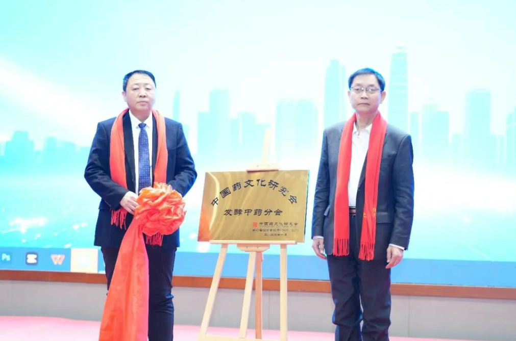 中国药文化研究会禹同生会长,发酵中药分会王如昌会长,共同为发酵中药分会揭牌