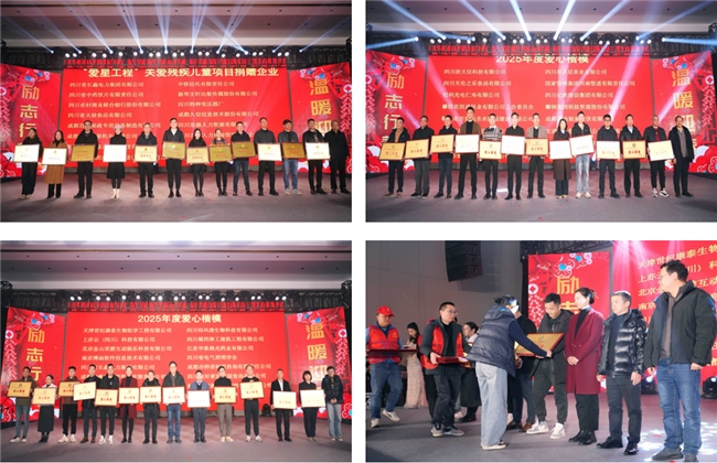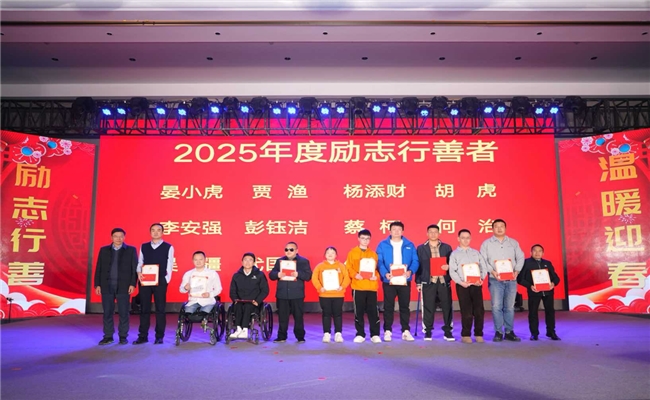 在年度公益致敬环节:活动给予了13名爱心人士“爱心大使”鼓励;给予了11名残疾人行善者“励志行善者”鼓励;给予了13家合作伙伴“爱心合作伙伴”鼓励;同时为春晚活动捐赠企业和“爱星工程”关爱残疾儿童项目捐赠企业给予了鼓励;活动最后,向2025年做出突出贡献的36家大额捐赠企业给予了“爱心楷模”鼓励。通过对爱心人士个人、合作伙伴和大额捐赠企业的集中致敬,进一步汇聚了向善力量,激励更多爱心企事业单位参与助残公益事业。
