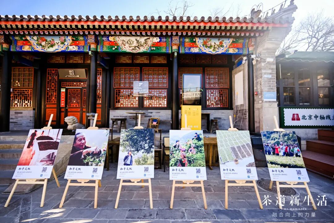 踏入宏恩观院内,两侧以极具张力的摄影图片将天南地北的茶山、茶人与生活瞬间拉至眼前:一边是“回归土地看见茶”主题——展现中国各地茶源地的山水风貌,土地与茶山;一边是“回归生活看见人”主题——展现茶人劳作、采茶、做茶、喝茶的瞬间。每一张图片,都是对土地的致敬,对茶的热爱,对生活的感悟。