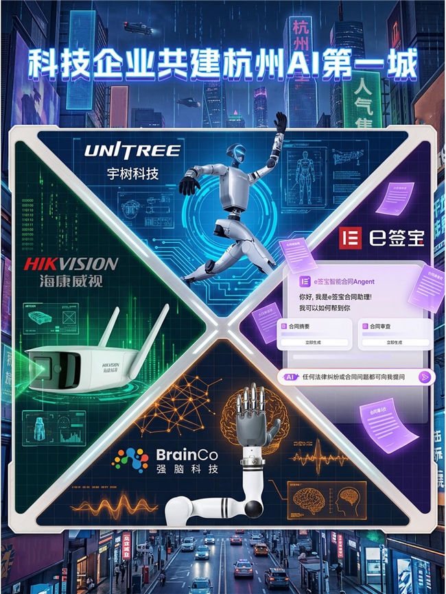 人工智能是新一轮科技革命和产业变革的重要驱动力量,省委常委、市委书记刘非在会上强调,杭州有基础、有条件、有责任在人工智能创新发展方面发挥示范引领作用。企业作为创新主体,正是杭州建设AI第一城的核心支撑宇树科技、海康威视、e签宝、强脑科技等企业的最新实践,生动诠释了杭州AI产业“塔尖引领、塔身强劲、塔基坚实”的发展格局。