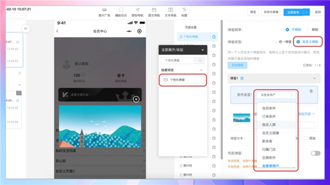 2、积分小程序个性化弹窗:千人千面互动,转化率显著上涨