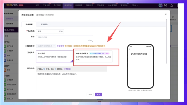 4、AI短信智能分时触达|对的时间给对的人发对的内容, ROI 大幅提升