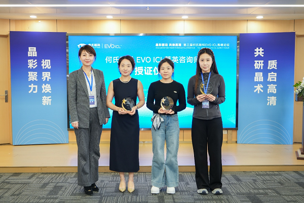 现场举行何氏眼科EVO ICL培训导师授牌仪式,苏敏教授、李付亮博士获聘集团EVO ICL培训导师,进一步完善集团人才培养与技术传承体系,推动优质医疗资源下沉,筑牢全流程质控防线。同步进行的EVO ICL菁英咨询师授证仪式,也为患者提供从咨询到术后的全流程专业服务保障。