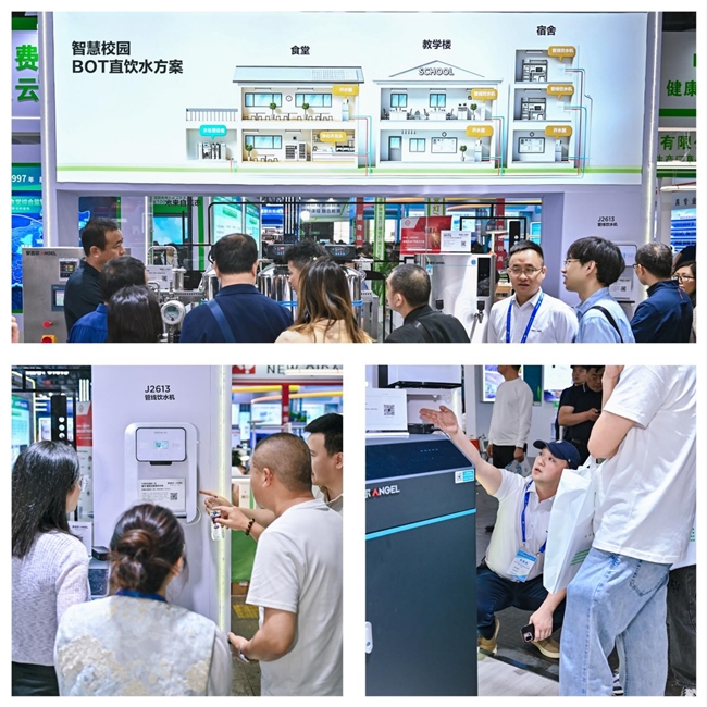 展会期间,安吉尔集中展示了针对校园特点量身打造的三大智慧净水方案,精准解决校园用水痛点。