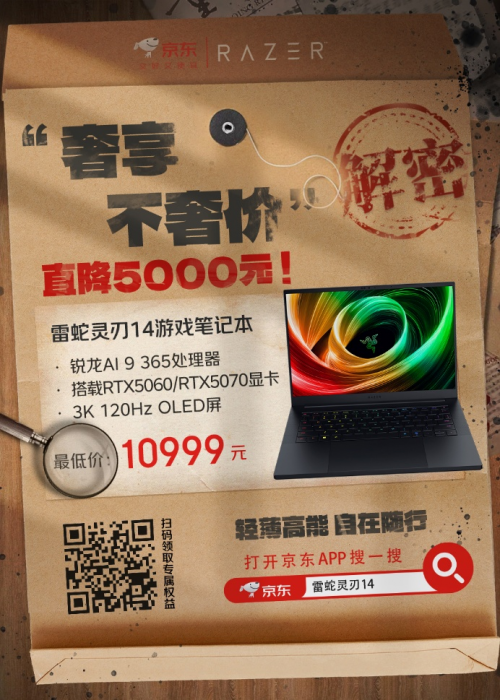 10月9日,京东11.11即将于晚8点全面开启,雷蛇灵刃系列游戏本新品好物率先在京东启动“奢享不奢价”限时直降活动。雷蛇灵刃14系列游戏本不仅性能强劲,而且设计轻薄,无论是日常办公还是高强度游戏都能轻松应对,其中雷蛇灵刃14 2025版 RTX5060款(16GB+1TB)游戏本和RTX5070款(32GB+1TB)游戏本限时直降5000元,部分地区用户还可享国家补贴立减2000元优惠,到手价降至8999元和11999元,为用户带来远超同价位产品的性能体验。打开京东APP搜索“雷蛇灵刃14”即可进入活动会场,想要低价入手雷蛇高性能游戏本的用户不要错过这次难得的机会。
