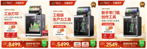 更多产品优惠及限时礼赠具体规则请登录天猫、京东、抖音等官方电商平台咨询客服或关注“创想三维CREALITY”微信公众号了解更多活动详情。