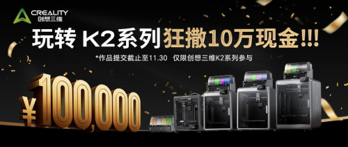 为鼓励用户创意落地,创想三维特别策划“K2系列创作大赛”,总奖金池高达10万元,面向所有K2系列打印机用户开放。