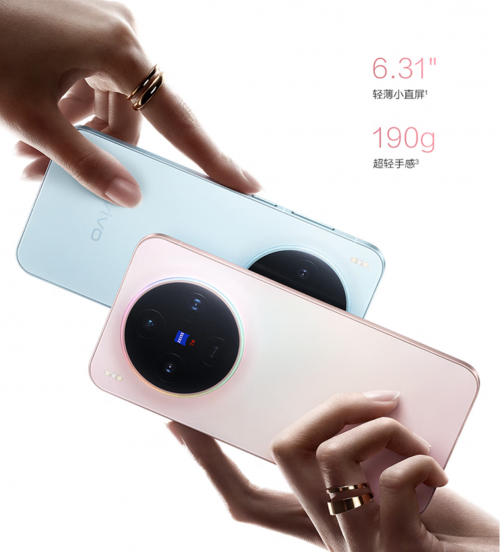 vivo X300搭载全新OriginOS 6,支持趣味光栅、小V电话助手2.0、小V圈搜2.0,获得5年持久流畅使用双证书,还可与苹果丝滑互联。vivo X300采用6.31英寸轻薄小直屏,机身薄约7.95mm,轻约190g,采用立边金属中框、丝绒玻璃工艺,带来纯粹黑、自在蓝、惬意紫、幸运彩四款配色。