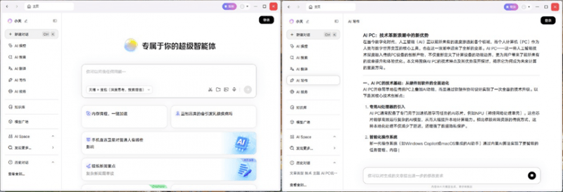 同时,这台ThinkPad T14 Gen6内置了联想全新天禧智能体的新版联想小天,提供了非常丰富的功能,比如进行知识问答、设备操控、文本翻译、辅助写作等等,还能构建属于自己的本地知识库,提供各种AI大模型等。而且它内嵌了本地AI大模型,部分功能在离线状态下也可以进行使用。