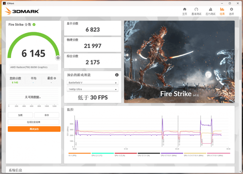 我们用1920*1200的分辨率进行测试,从上图的测试结果可以看到,在 8 个核心和 3000MHz 频率的加持之下,Radeon 860M 的表现令人满意,对于一些简单的图形图像的编辑处理任务,可以轻松拿下。