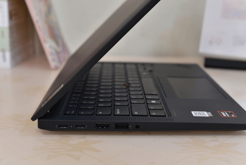 来到B面,这台ThinkPad T14 Gen6采用了一块 14 英寸 IPS 屏幕,拥有 1920×1200 的高分辨率,显示效果清晰细腻。与很多以往采用 16:9 比例的屏幕相比,ThinkPad T14 Gen6采用了 16:10 的黄金比例,并且支持触摸,这样的好处是能够显示更大的面积,操作形式更加灵活,非常适合商用办公。