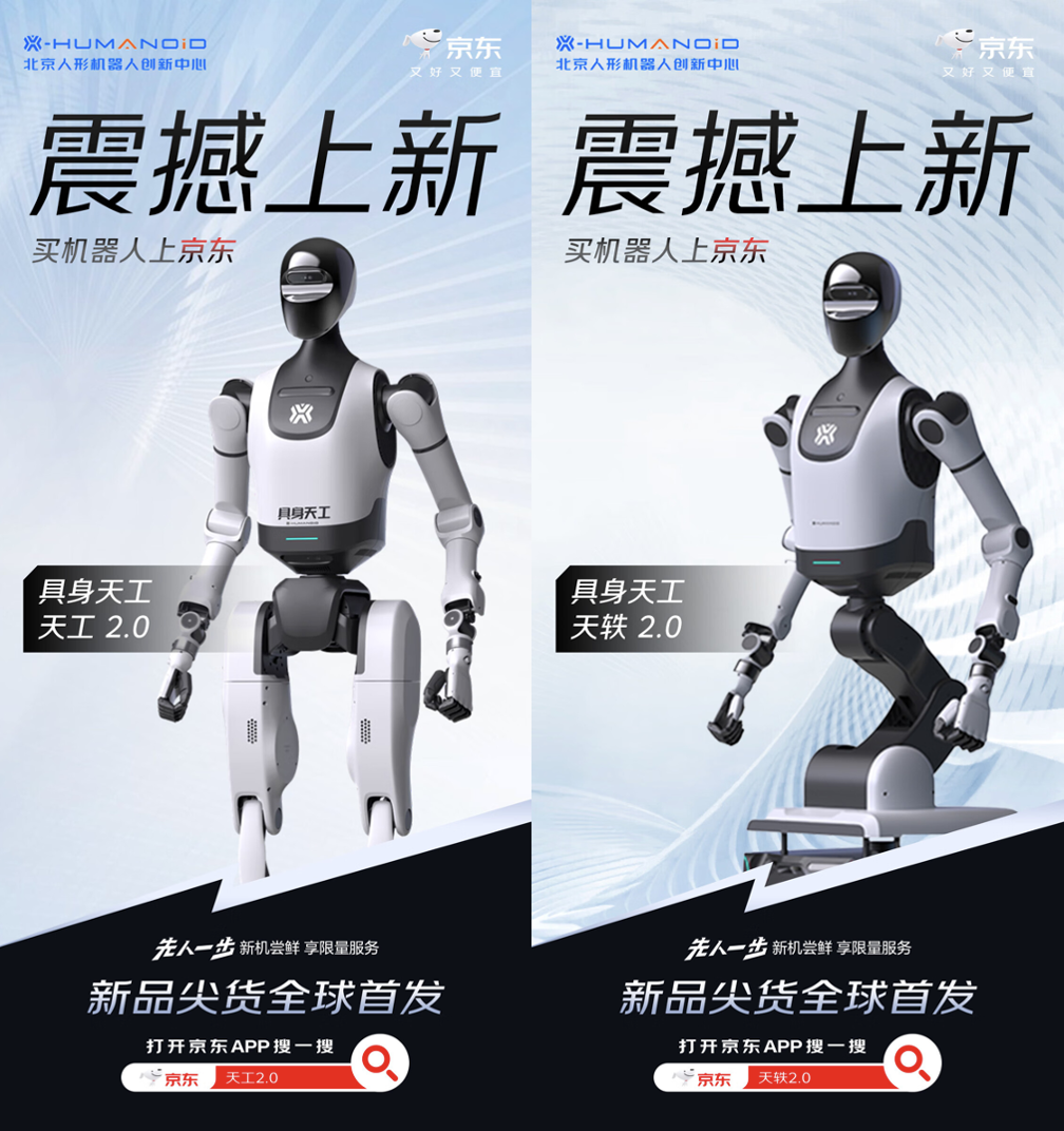 10月17日,北京人形机器人创新中心旗下两款自主研发的具身智能机器人——通用机器人平台“具身天工2.0”与通用轮臂机器人“天轶2.0”,正式上线京东,用户现可通过京东APP搜索“机器人11.11”,轻松购得全球前沿的智能机器人产品。