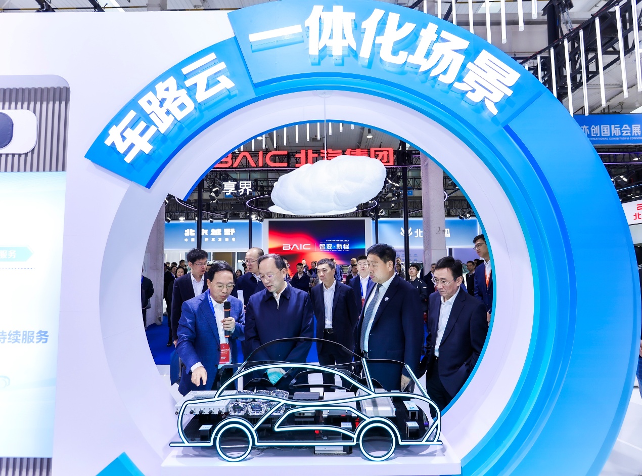 全国政协常委、经济委员会副主任、工业和信息化部原部长苗圩莅临展台,听取中信科智联副总经理于中腾关于中信科智联车路云一体化产业推进成果方面的介绍。