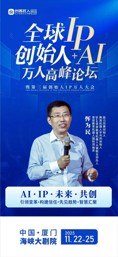 2025年11月,让我们相约厦门,共同探索AI时代的创始人成长新路径,破解个人IP建设难题,把握智能商业时代的新机遇。