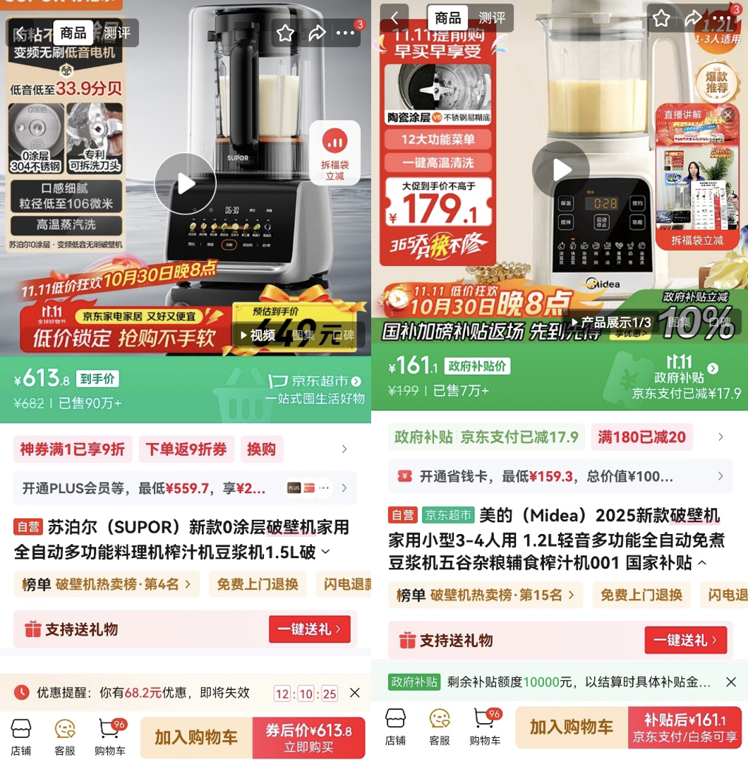 苏泊尔 SP511R采用十重降噪设计,运行噪音低至48分贝。0 涂层 304 不锈钢杯体采用食品级304不锈钢内胆,安全健康。1.5L 大容量适配家庭需求,同时支持 12 小时预约和3小时保温。京东下单到手价仅需613.8元。