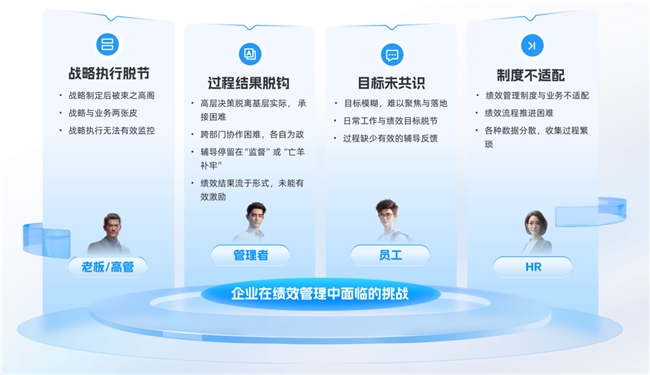 高层定的 “年度营收增长 20%” 战略,到部门层面沦为模糊的 “提升业绩”,再到员工端简化为 “完成月度销量指标”,目标层层衰减;管理者因缺乏动态检核机制,直到季度末才发现 “战略落地偏差”,却错过调整窗口期;HR 则困于 “数据孤岛”—— 战略目标在 OA 里、部门绩效在 Excel 中、员工任务在项目系统内,无法联动验证战略执行效果,制度推进处处受限。