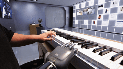 现场还展示了多种脑机与神经信号驱动设备的应用:臂环控制机械臂利用肌肉与神经电信号采集和解码完成动作复制;灵巧手凭借高精度算法实现五指独立与协同操作,可精准敲击琴键;手套遥操作机械臂则通过传感器捕捉手部动作,实现实时同步控制,可应用于深海、矿井等高危场景。脑控机械臂展示了更高层级的交互形式——通过脑机头环采集和解码脑电信号,系统将意念直接转化为运动指令,无需肢体参与。