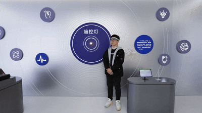 在体验区,参访者还能够直观地看到脑机接口技术如何让生物信号转化为现实动作。