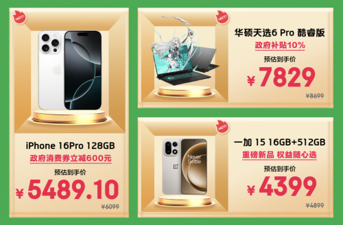 本次活动中,Apple、华硕、索尼、华为等主流品牌均参与补贴。其中,iPhone 16 Pro 128GB白色钛金属版原价6099元,政府消费券直接立减600元,到手价仅5489.1元;高端游戏本华硕天选6 Pro酷睿版RTX5060型号,在享受政府补贴10%后,叠加晒单返30元E卡,最终支付7829元即可入手,相比原价劲省870元;一加15 16GB+512GB原色沙丘版作为旗舰重磅新品,除政府补贴外,还支持以旧换新至高补贴1100元,搭配24期分期免息,4399元即可拥有旗舰配置。