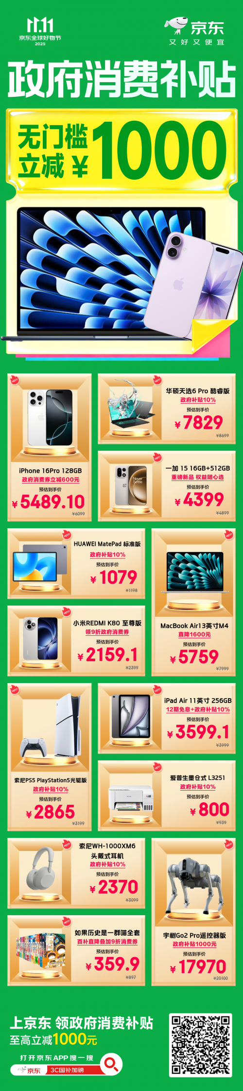 消费者只需打开京东APP,搜索“3C国补加磅”,进入活动页面后选择心仪产品,点击“立即购买”即可自动享受政府消费补贴,无需额外领券。下单完成后,京东物流极速配送,部分商品更支持24期免息、以旧换新、价保30天等权益,售后无忧,换新更省心。赶紧上京东APP搜索“3C国补加磅”,锁定你的心仪3C好物,轻松享受年度超值购机体验!