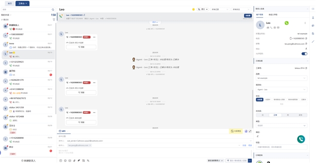 统一工作台处理电话、邮件、聊天、短信及Facebook、WhatsApp、Ins等主流社交媒体消息;