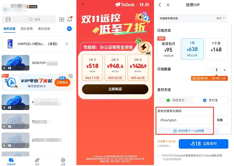 考虑到远程办公正在成为长期趋势,选择多年套餐相信会是更为明智的投资。对于新用户们来说,双十一期间的首单特惠也实属一年中的最佳入门时机。无论是基础办公需求的118元专业版,还是追求极致体验的478元性能版,都能以历史最低价体验到ToDesk带来的便捷。