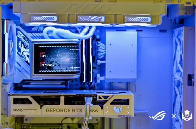 活动现场还特别展出了超多PC解决方案,全部搭载ROG高能电竞装备,以硬核实力重塑性能标杆。其中,信仰旗舰ROG ASTRAL夜神RTX5080显卡以四风扇散热系统,配合专利真空腔均热板、相变GPU导热垫、超高的默认频率及增强的电力供应等,将战力极限推向全新维度,为极致玩家解锁无界性能体验。ROG STRIX猛禽RTX5070Ti显卡以新一代美学设计惊艳登场。其标志性的散热架构与高效能核心相得益彰,在严苛负载下仍保持稳定输出,为高阶电竞场景注入澎湃动力,助力玩家决胜毫秒之间。此外,华硕TUF GAMING RTX5070Ti WHITE白色版显卡以潮流美学诠释硬核基因。纯白配色与方正造型的碰撞,军规级供电组件则为其提供坚实后盾,在颜值与性能的双重维度上,为玩家打造兼具视觉冲击与实战效能的理想装备。
