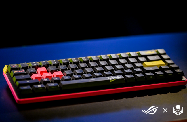 不仅如此,电竞房区域还搭配了多款ROG外设装备。其中,ROG魔导士ACE HFX ZywOo联名键盘极具吸引力。外观上采用粉色和黄色,键帽上还融入了ZywOo的个人LOGO以及大狙图案,非常适合高颜值桌搭追求者。而且,还配备了ROG HFX磁轴,再加上五重消音棉设计,提供出色敲击感受,为玩家带来舒适的游戏体验。