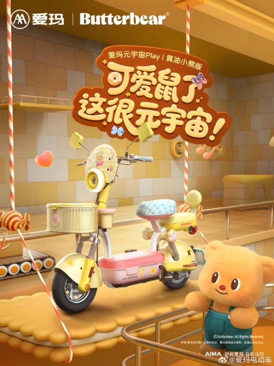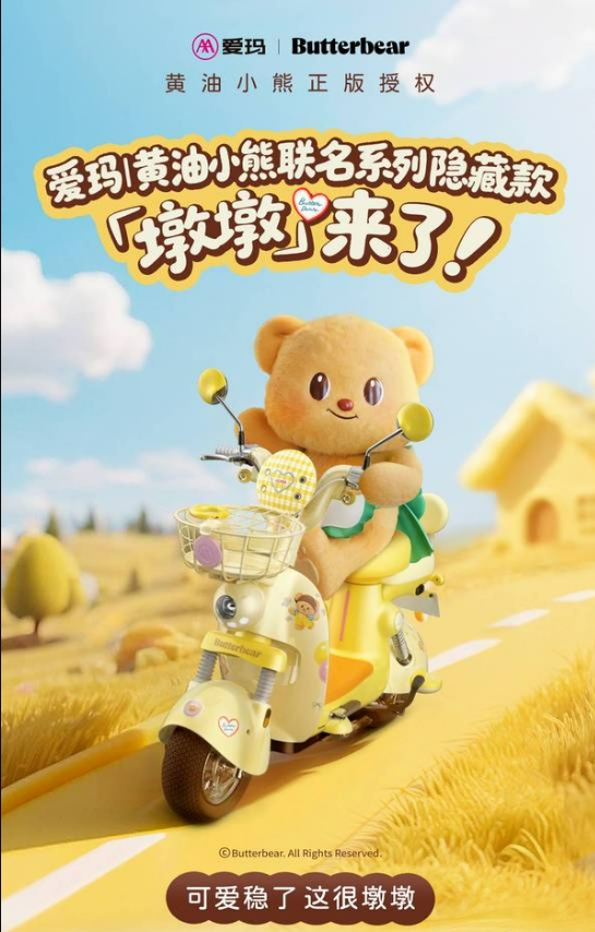 “谁能拒绝一只可以兜风的黄油小熊呢?”可以说,爱玛黄油小熊系列车型的备受青睐,根源就在于与黄油小熊IP的相互成就。象征温暖、活力、希望的标志性“黄油”配色,营造出“融化”的软质感呼应;卖萌的“捧脸杀”和魔性扭屁股舞蹈,萌化每一位“姨姨”的心;从烘焙店女工晋升到手提Gucci参加奢侈品走秀的女明星,励志地蜕变让还在奋斗路上的年轻人找到了共鸣。
