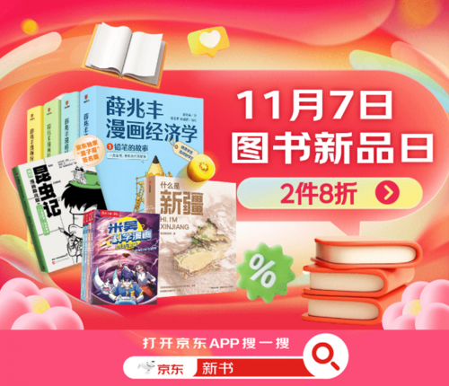还在为寻觅高品质新书而费心?京东11.11图书福利再加码,11月7日图书新品日重磅登场!无论是助力认知升级的深度读物,还是点亮童年的趣味少儿佳作,亦或是拓宽视野的文学好书,海量优质新书集结就位,全方位适配不同读者的阅读偏好。打开京东APP搜一搜“新书”,新品日期间享2件8折超值福利,为你解锁更具性价比的阅读体验!