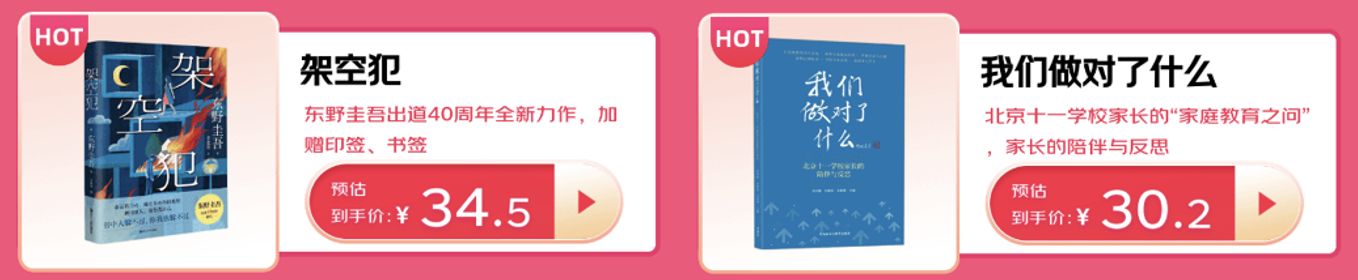 阅读的意义,从来都是为不同心境与需求提供专属的精神滋养。对于偏爱深度叙事与生活思考的读者,东野圭吾出道40周年的全新力作《架空犯》无疑是诚意满满的惊喜之选,加赠印签与主题书签,34.5元就能解锁精巧紧凑的悬疑故事;聚焦家庭教育的《我们做对了什么》分享亲子陪伴的真实反思与相处智慧,30.2元便能品读北京十一学校家长的“家庭教育之问”,让每一位在育儿路上探索的家长都能找到强烈的情感共鸣。
