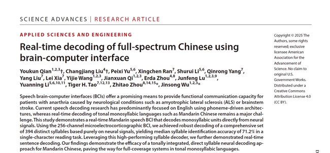 该成果不仅填补汉语实时解码国际空白,更首次为全球声调语言脑机接口研发提供可复用技术范式,为我国在这一未来产业前沿领域奠定领跑基础。