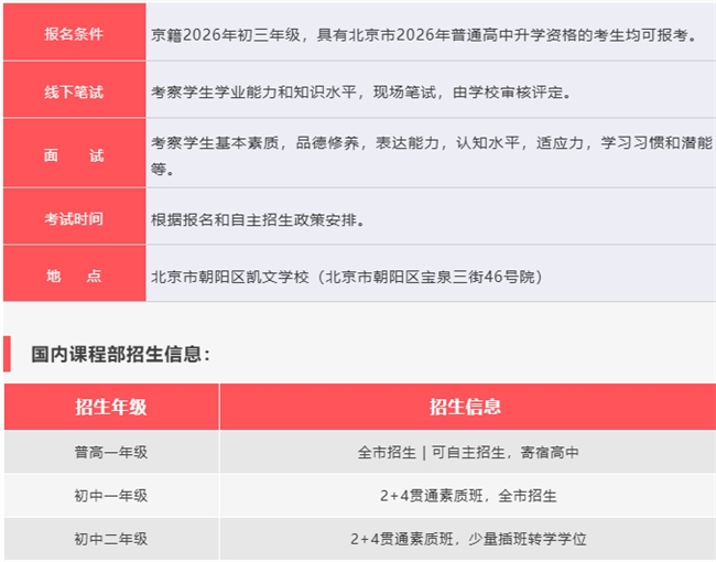 朝阳凯文国家课程项目初中“2+4贯通素质班”的设置,打破了传统学段割裂与应试导向的桎梏,以一场结构性重塑,为学生的成长铺设了一条实现知识体系与能力培养的无缝衔接、前置规划、长线培养,为学科拓展、竞赛探究,打破“应试”与“素养”对立的个性化发展道路。