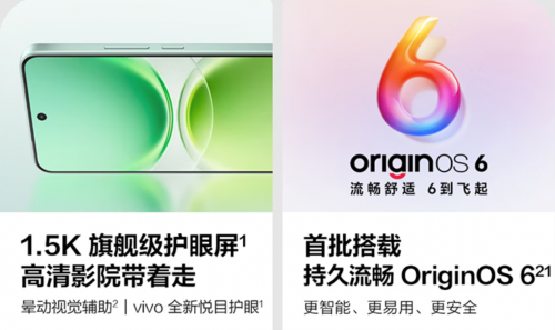 vivo Y500 Pro搭载6.67英寸1.5K旗舰级护眼屏,支持2800×1260超高分辨率、460PPI像素密度、晕动视觉辅助,同时采用vivo全新悦目护眼方案,画面细腻,观感舒适。vivo Y500 Pro薄至7.81mm,轻至198.6g,带来钛黑、祥云金、浅绿、柔粉四款配色。vivo Y500 Pro搭载OriginOS 6,支持摇一摇群组分享、小V圈搜2.0、小V作业助手、小V写作,更好用;带来安全数据访问、疑似风险提醒、“摇一摇广告”管控、阻止安装恶意应用,更安心;带来网络加速、三向定位增强、免提通话增强、自动增强屏幕亮度、延长自动锁屏时间,并跟随应用开启和关闭,方便使用。