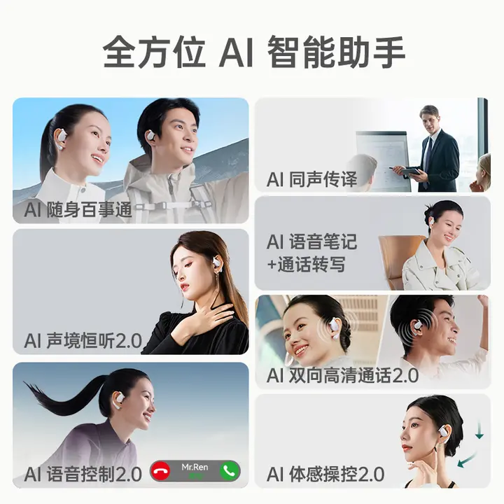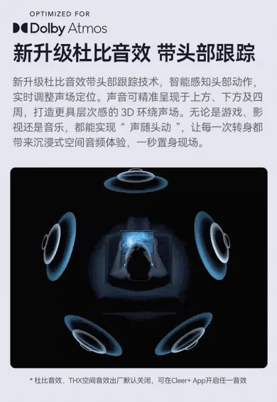 音质方面,该耳机作为全球首款集杜比音效、THX空间音频、DTS空间音频三大国际顶尖音频技术于一体的开放式AI耳机,具有AI头部跟踪功能,可以让用户通过头部转动,感受处于360度空间音效的中心,带来更加均衡且沉浸式的音频收听体验。同时,该耳机新升级杜比音效,智能感知头部动作、实时调整声场定位,无论是游戏、影视还是音乐,都能“声随头动”,打造更具层次感的3D环绕声场。