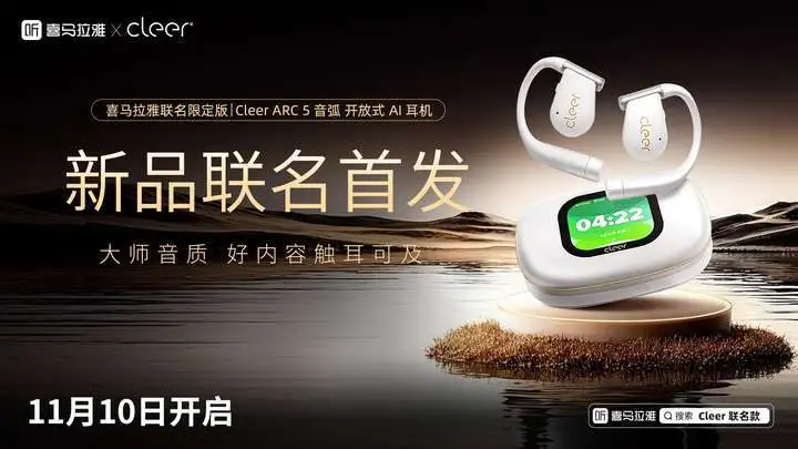 目前,喜马拉雅与Cleer联合打造的“Cleer ARC5 音弧 开放式AI耳机”已在喜马拉雅APP、京东等平台同步开售。即日起,在喜马拉雅APP、京东等平台搜索“Cleer 联名款”购买耳机,还可获赠“喜马拉雅会员月卡”,畅享平台海量有声内容。
