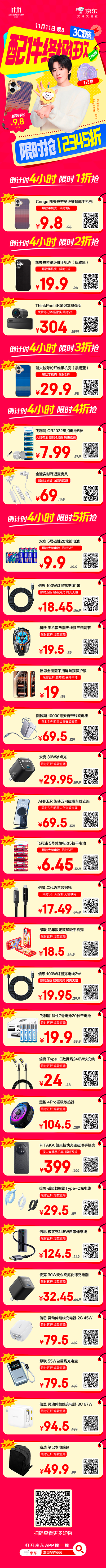 值得注意的是,11月11日晚8点,京东3C数码配件终极狂欢也即将开启,众多爆款配件限时抢 1、2、3、4、5 折,优惠力度拉满。Conga凯夫拉芳纶纤维超薄手机壳限时1折,11日晚8到手价低至9.8元;凯夫拉芳纶纤维手机壳限时2折,11日晚8到手只需19.9元;ThinkPad 4K笔记本摄像头限时2折,11日晚8只需304元就能带回家;凯夫拉芳纶纤维手机壳限时3折,11日晚8到手只需29.9元;飞利浦CR2032纽扣电池5粒限时4.5折,11日晚8只需7.99元;金运实时耳返麦克风限时4.6折,到手只需69元。另外双鹿5号碳性20粒缩电池、倍思100W灯显充电线1米、科沃手机散热器无线款三档调节、倍思全覆盖不挡屏防窥保护膜、图拉斯10000毫安自带线充电宝、安克30W冰点充、ANKER旋转万向磁吸车载支架、飞利浦5号碱性电池5粒等好物都可享限时5折福利。