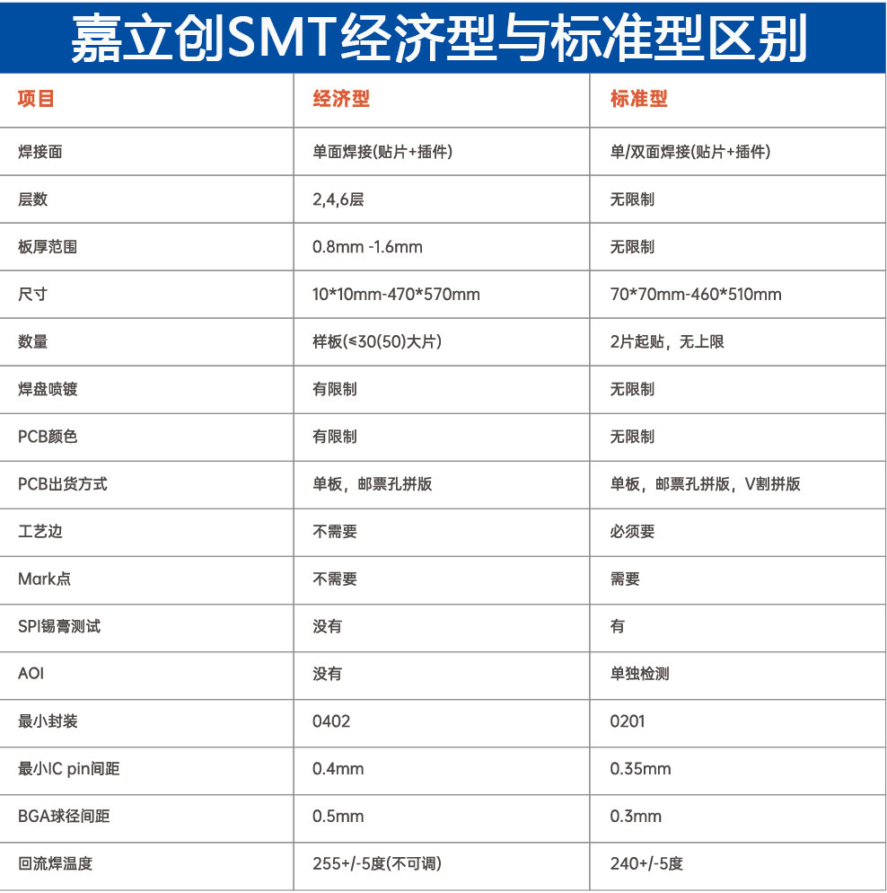 为了帮助工程师做出最精准的选择,我们将两种smt贴片服务的关键工艺参数进行详细对比。如下图: