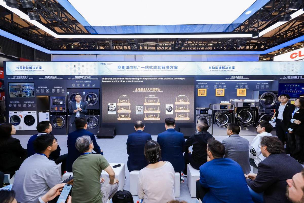 在11月12日-14日举办的2025中国洗涤展,海尔商用洗衣机以“场景化产品矩阵”回应了这一趋势,于现场同步召开“智净未来·生态全景”发布会,重磅发布商洗工业机、半商用机、轻商用机全球最全3大产品平台,涵盖13.6kg BD商用洗烘套装、超长寿命工业洗衣机系列、15kg×2双层干衣机等全矩阵产品,构建起覆盖专业洗涤、酒店洗护、校园智洗、自助洗涤四大核心场景的行业最全解决方案。