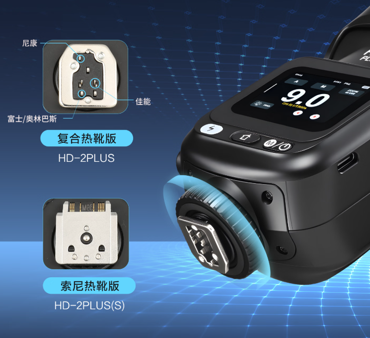 以金贝HD2PLUS机顶闪光灯为例,首先要选择对应的相机型号,有些闪光灯是专灯专用,在购入时就要选择对应相机型号的闪光灯。而金贝的机顶闪是复合热靴设计,除了索尼需要提供单独版本外,松下、尼康、佳能、富士等主流相机品牌都可以通过金贝机顶闪的复合热靴一灯多用。