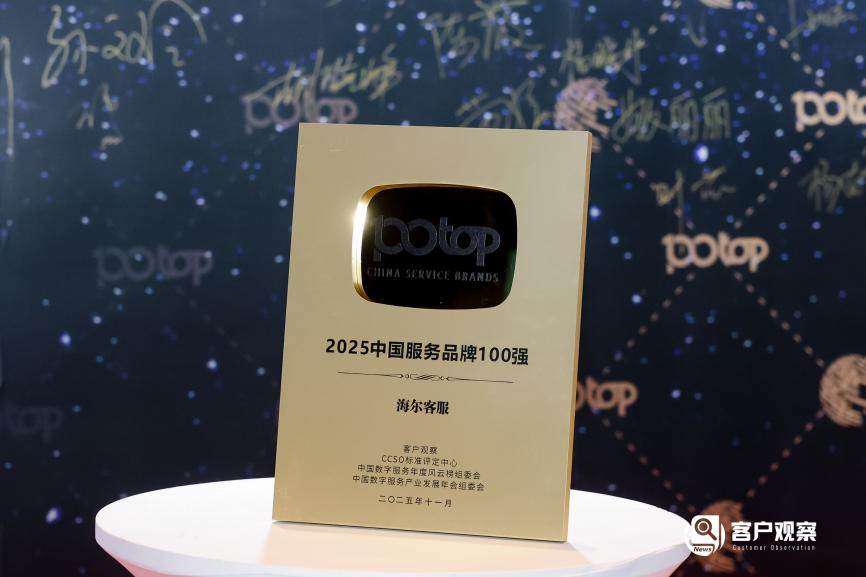 11月20日,在2025(第十届)中国数字服务产业发展年会现场,“2025中国服务品牌100强”榜单正式揭晓。海尔服务凭借“打造数字服务新体系,AI驱动全链路提质增效”的数字化实践成功入选。至此,海尔智家已连续5年入选该榜单。