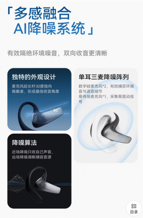不同于传统入耳式或头戴式设备的局限,科大讯飞AI翻译耳机创新性采用了“骨导+气导”双传导技术,搭配开放耳挂式结构,无需堵塞耳道即可实现清晰收音与音频输出。此外,其独特的声学架构可精准分离佩戴者自身语音与环境噪声,通过智能降噪算法过滤外界干扰,即便在嘈杂的车站、商场或户外环境中,也能确保语音输入的纯净度,从而显著提升翻译准确率,让跨语言沟通告别“听不清、译不准”的困扰。