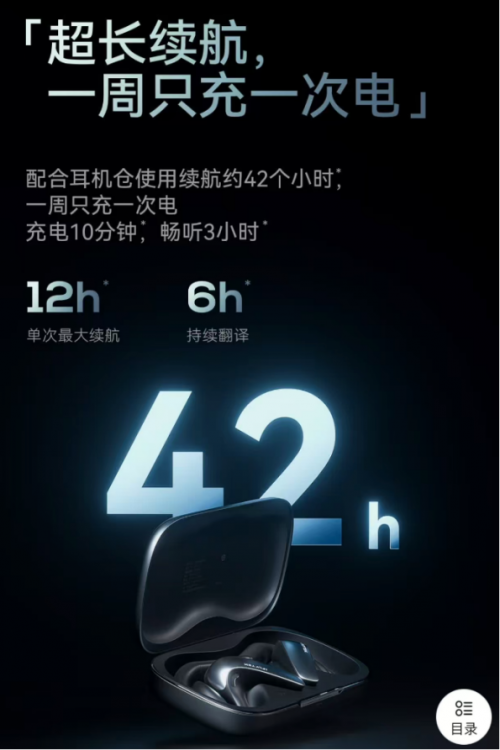此外,该耳机适配全球多种耳形,材质上也是安全亲肤,搭配银离子抗菌涂层,久戴不闷、佩戴稳固。0.8mm钛丝支撑让眼镜用户佩戴也稳固舒适,并采用黄金重心设计,确保在跑步、跳跃等运动中依然稳固贴合。科大讯飞AI翻译耳机的超长续航也可为用户提供电量保障,单次最大续航可达12小时,搭配充电仓最长42小时使用,轻松应对一周的通勤或差旅需求。