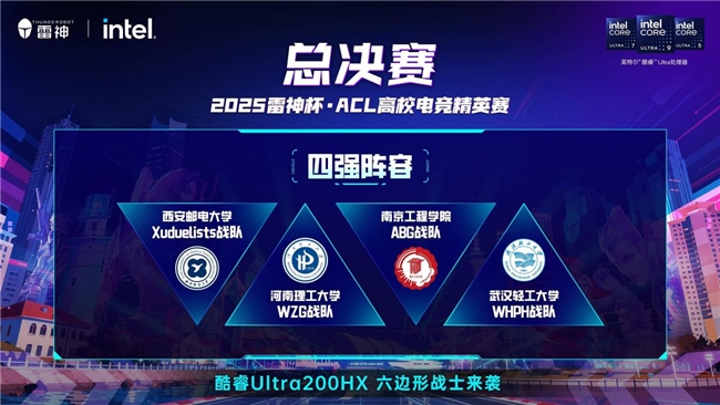 作为由雷神科技打造的专注于高校群体的专业电竞赛事品牌,自启动以来便备受瞩目。赛事以游戏《无畏契约》为比赛项目,覆盖超200所高校,吸引逾1600支战队报名参加,参赛人数突破1万人次。经过多轮激烈的淘汰赛,最终西安邮电大学—Xuduelists战队、河南理工大学—WZG战队、南京工程学院—ABG战队、武汉轻工业大学—WHPH战队这四支实力与韧性并存的高校战队杀出重围,成功会师总决赛。本次总决赛雷神携手英特尔助力青春热血,以电竞之名赴巅峰之约!