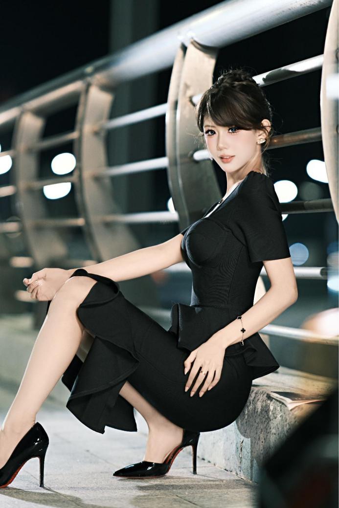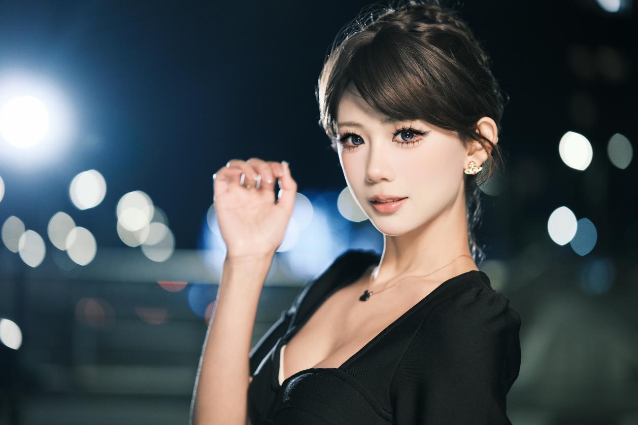 夜晚的城市灯光加上黑色天空背景,可以让人像拍摄更加聚焦于人物主体,还有盈盈灯光点缀背景,是非常出片的一种摄影场景。